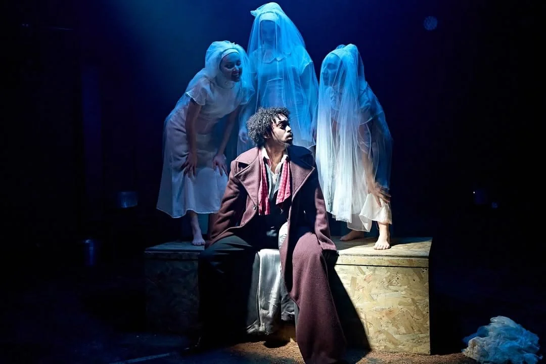 First act of the play was taking place in the 19th century Whitby, and the second act was in contemporary Leeds. for the first act sound design had a lot of references to the gothic era, for the second it was influenced but industrial, hip-hop, EDM and pop.