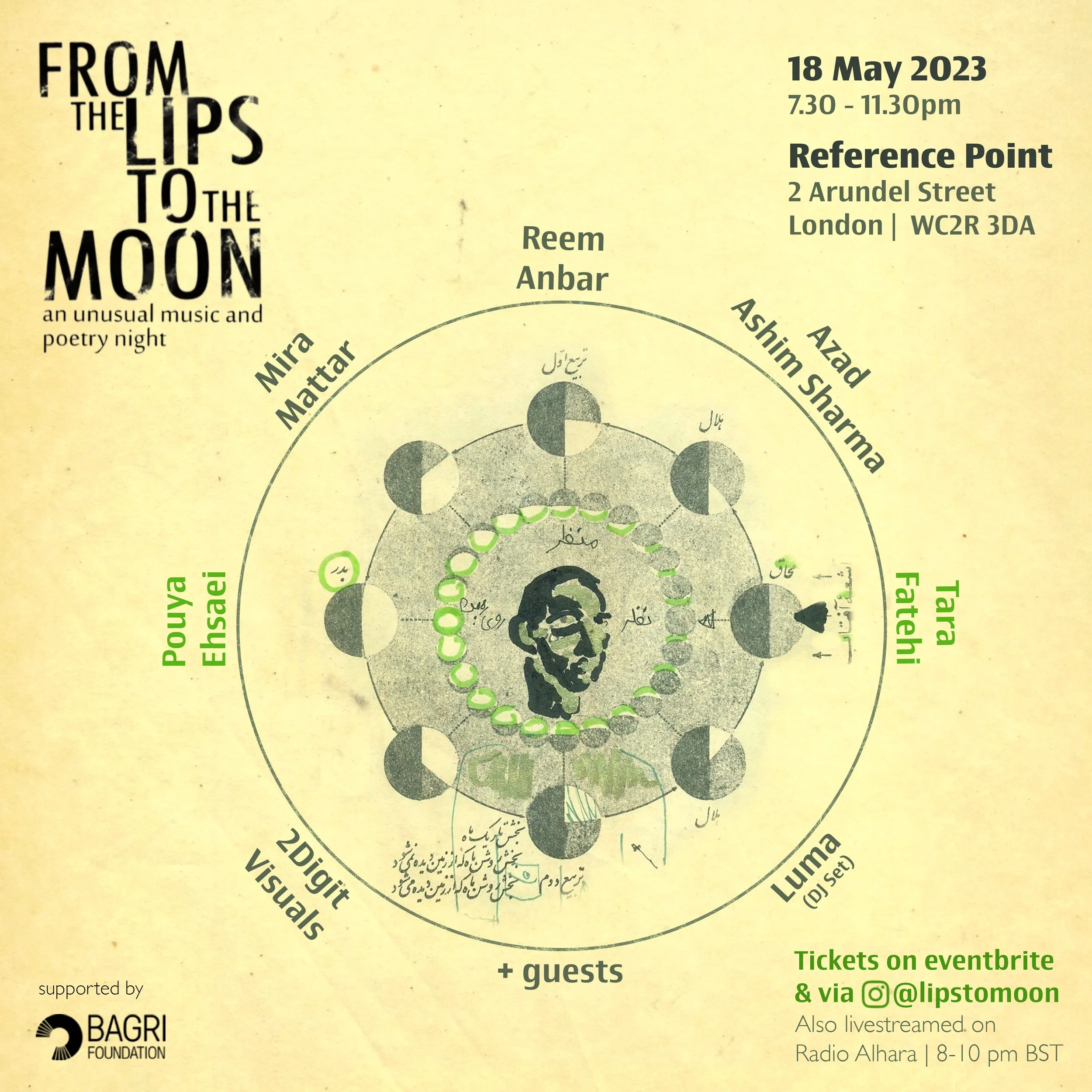 w/: Reem Anbar (oud), Sarona Abuaker (poet), Azad Ashim Sharma (poet), Luma (DJ set)